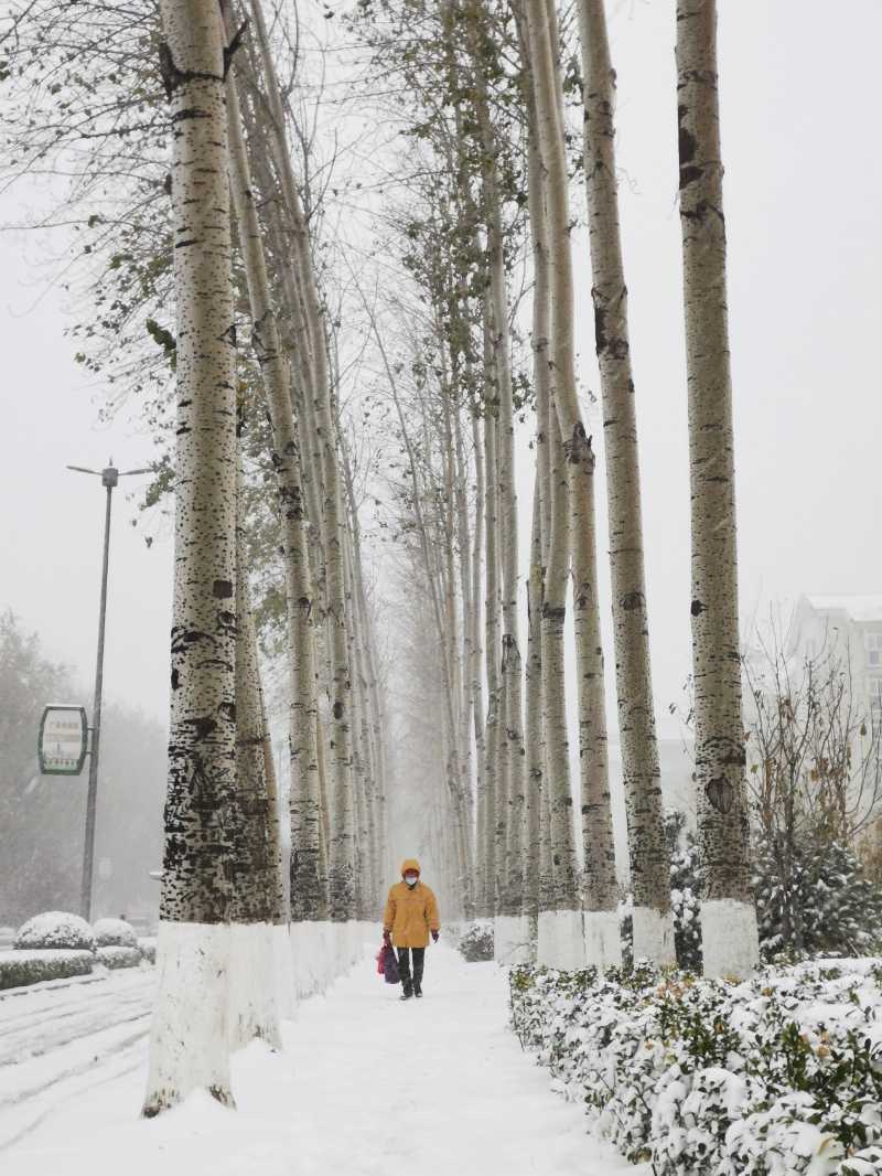 雪景虽美,但要注意保暖哦。走在路上,一定要慢一点儿,小心一点儿。