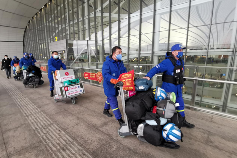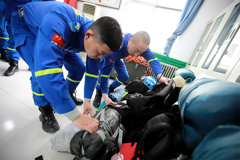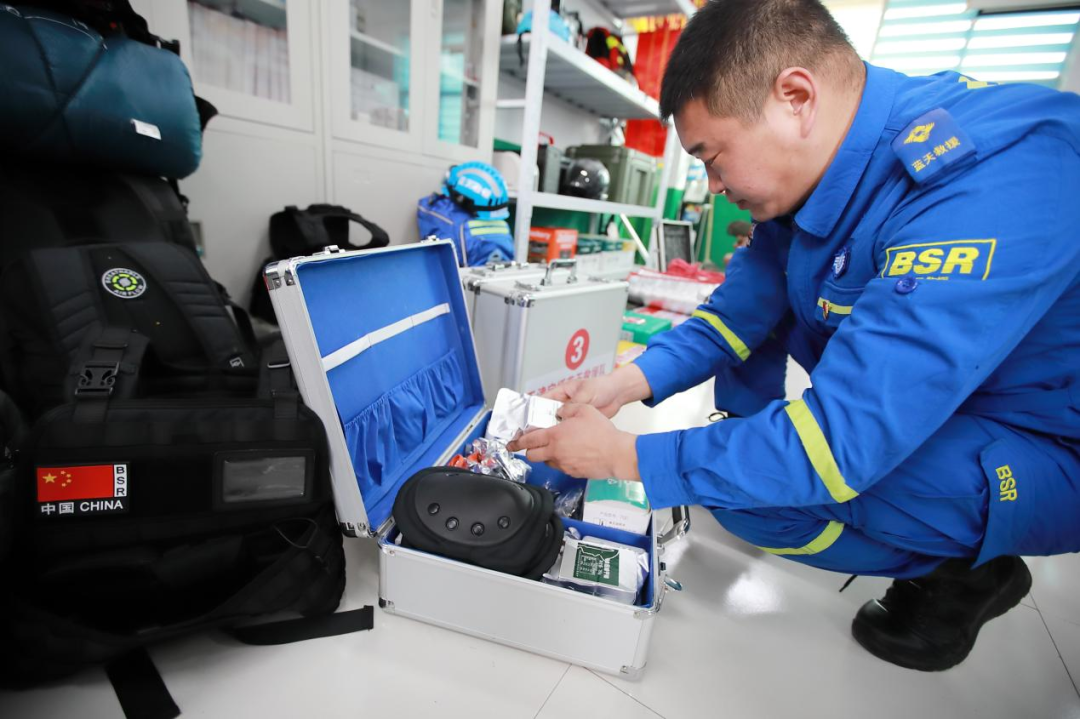 下午4点,宝坻区红十字蓝天救援队的6名队员整装待发,做好最后的物资核对后,驱车前往北京大兴机场。中转三次后,他们将在有关部门的安排下前往震区现场,配合当地完成救援指派任务。