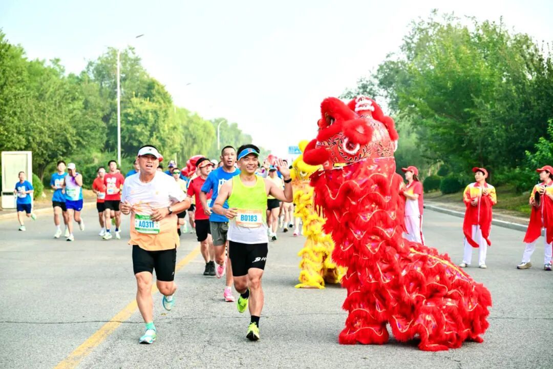跑友们沿潮白河畔一路向前,途经白毛庄村、樊庄子村、陈庄子村、孝庄子村等多个美丽乡村,穿行于万亩稻田之间,宛如置身一幅幅流动的“北国江南”生态画卷。赛道沿线精心设置的10个特色补给站和10个氛围加油点,让跑友在享受运动乐趣的同时,还能品尝当地的时令蔬果和特色美食,观看村民们的锣鼓表演和秧歌助威,体验最淳朴的乡村风情。