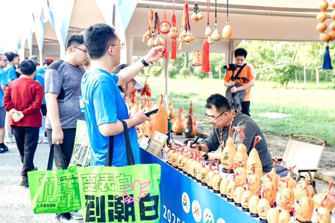 赛事终点处的“村跑大集”人气爆棚,80余家商户带来浓浓的天津味道。选手和游客们不仅可以品尝赤土扣肉丸子、米糕、宝坻肉饼等传统美食,还能选购宝坻“三辣”、小站稻等“津农精品”,更可亲身体验杨柳青木版年画、天津葫芦制作、津派泥塑等非遗项目,让传统文化在互动中焕发新生机。