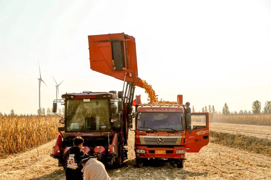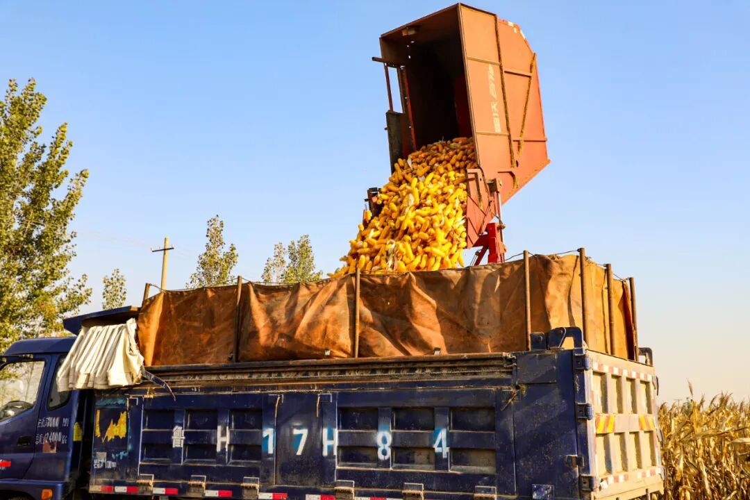 走进鲫鱼淀村的玉米地,每一株玉米都结满了沉甸甸的果实,机器轰鸣声不绝于耳,玉米收割机和运输车正开足马力,在田间地头来回穿梭。一排排挺立着的玉米植株连秆带穗被卷入机械中,摘棒、剥壳、秸秆粉碎一气呵成,色泽金黄的玉米棒倾泻而出倒入运输车,将“丰收在望”变成“颗粒归仓”。