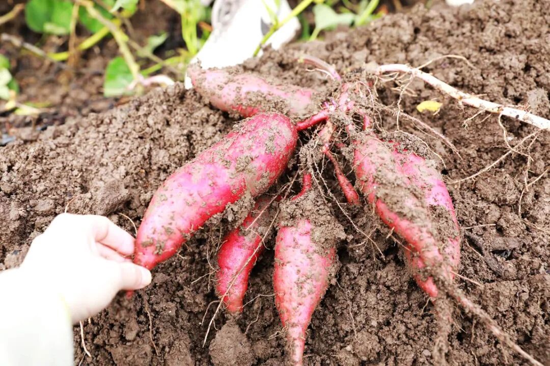 田埂间,农户们用整整五个月的辛勤,换来了满地红褐色的甜蜜。新挖出来的蜜薯裹着泥土的芬芳,每一块都沉甸甸的,是秋天最朴实的馈赠。