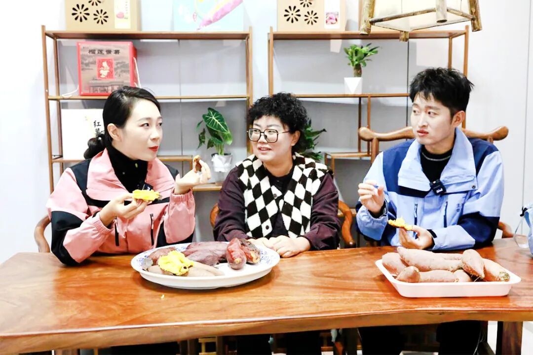 希萌家庭农场种植了100多亩蜜薯,有榴梿蜜薯、玛莎莉、水晶紫、红天使等多个品种。新鲜的蜜薯长得有点撞脸,烤熟之后立见分晓,黄、白、橙、紫等,颜色丰富。“好香!看起来好诱人。”融媒主播晓晨一边品尝,一边分享口感,“吃起来甜糯糯的,等天气再冷一点儿,捧着这样热乎乎、甜滋滋的蜜薯,简直太幸福了!”