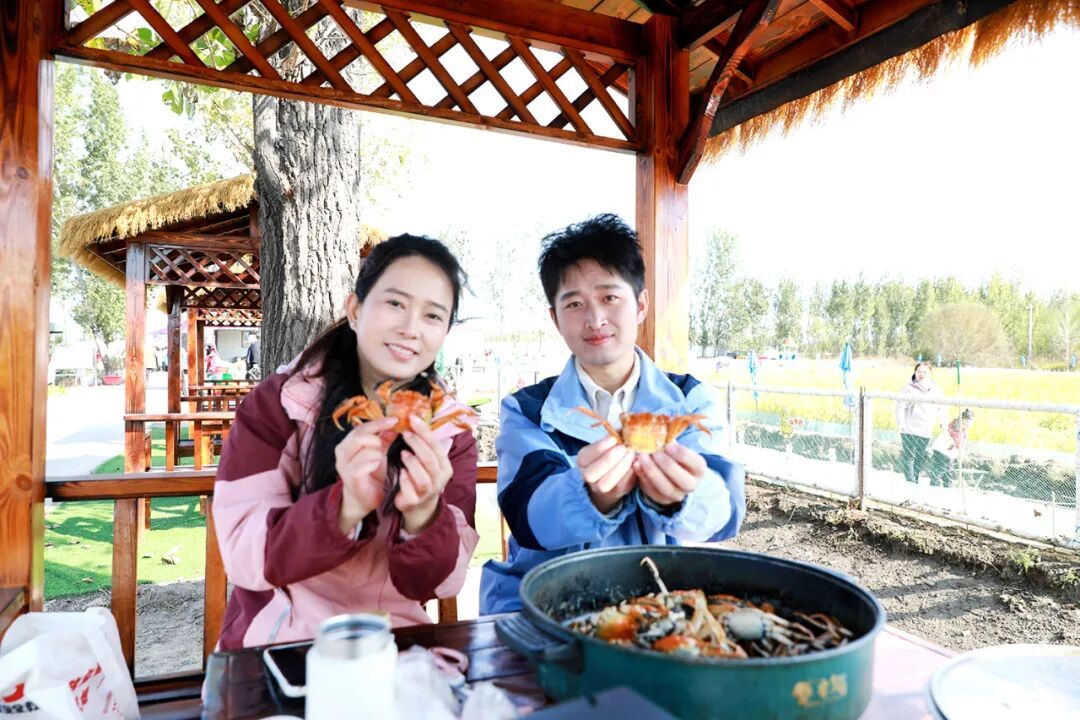 漫步燊宝鑫科家庭农场,稻穗压弯了腰,蟹儿爬满了田。融媒主播小崔和杨野扛起钓竿,拎上水桶,带上马扎,嘴里念叨着“慢稳轻快”口诀,兴致勃勃走进钓蟹园。