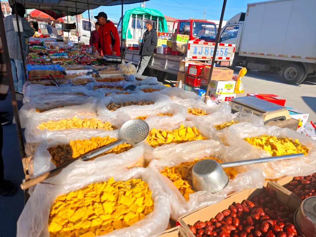 天一转凉,就想找点暖和的东西,不管是衣服,还是吃的。这时候,大唐庄镇集市上那些焦糖色、棕褐色、暖黄色的食物就显得特别应景。