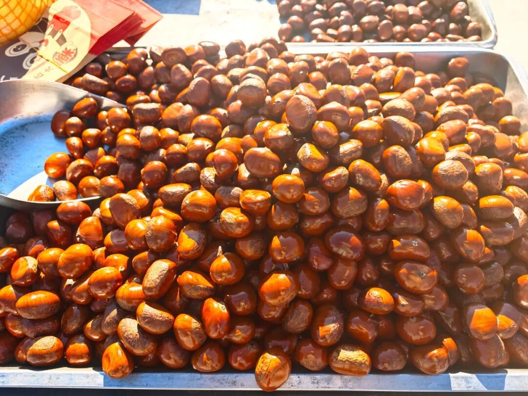 如果说冬天的大集有灵魂,那一定是糖炒栗子。深褐色的栗子在铁锅里翻滚,外壳油亮,色泽诱人。买一包拎在手里,隔着纸袋依然能感受栗子的热乎。剥开一颗,果仁金黄完整,一口咬下去软糯香甜,从嘴里暖到心里。