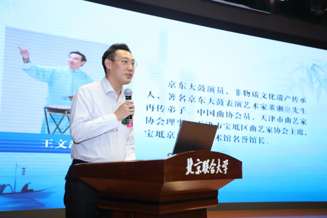 作为董派京东大鼓再传弟子,王文磊演唱娴熟,韵味醇厚,台风稳健,被业界誉为“颇有董老风范”。然而他并未满足于继承传统,而是深刻认识到:“非遗传承的生命力在于活态传承,必须与时代同频共振。”