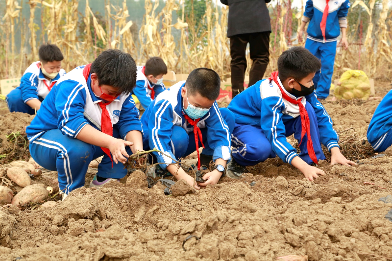 当学生们刨开土,看到红薯露出头来的时候,兴奋和喜悦之情溢于言表。每挖出一个红薯,他们就像找到宝贝一样,兴奋地向同伴展示,并轻轻地放入箱子中。尽管大家满手都是泥,满身都是土,但他们收获了专“薯”于他们的快乐。孙家呈挖得特别欢,高兴地说:“跟同学们一起挖红薯特别开心,体验到了收获的快乐,也感受到农民伯伯的辛苦。今后我要更加珍惜粮食,光盘行动,从我做起。”