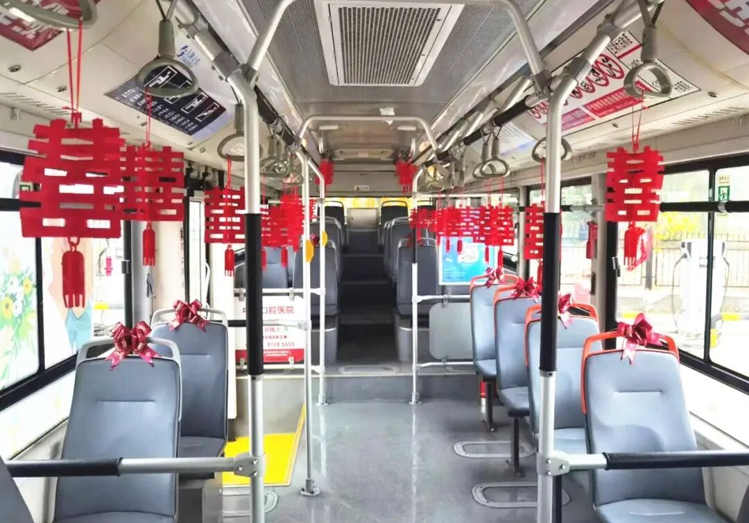从网上看到“公交婚车”的点子时,这两位新人当即决定选择公交车作为婚车。不仅能让亲朋好友共聚一车,性价比还高。新娘小王介绍,相比传统婚车队伍,他们的“公交婚车”全程40多公里,仅花费800元。“公交婚车”性价比高、氛围足,成为朋友圈热议的“创意婚礼”。为了让新人一路温暖舒适,驾驶员康德广凌晨三点半便到车队提前检查车辆、开启暖风。