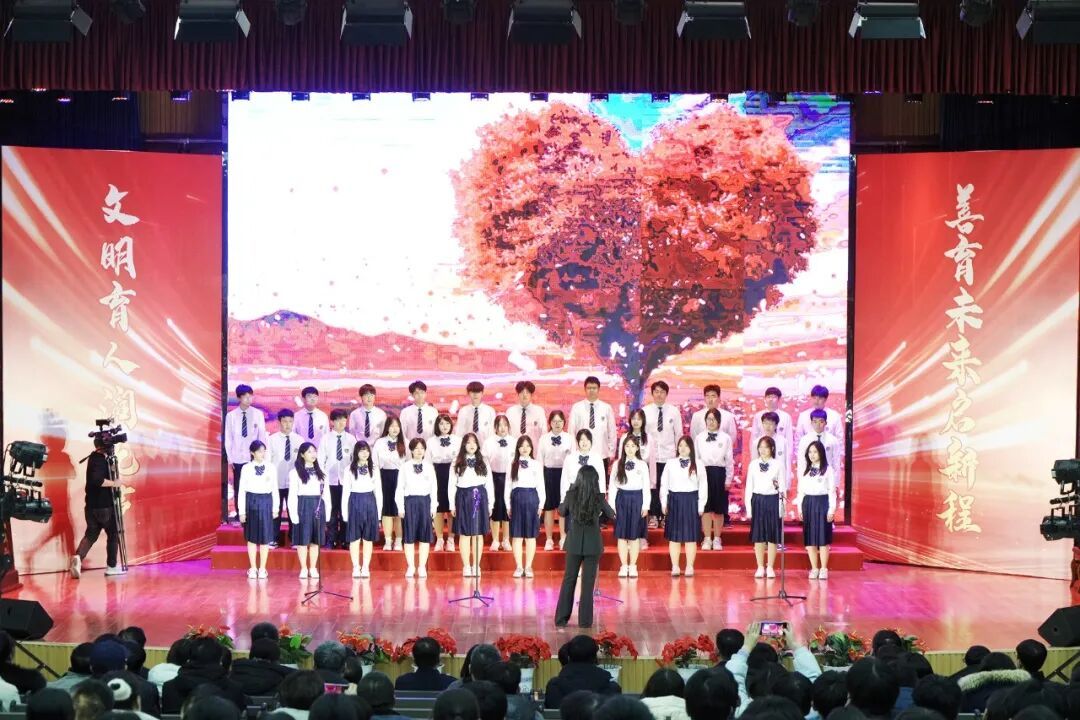 作为宝坻区深化全国文明城区创建、推进未成年人思想道德建设的重要品牌活动,“善育未来”系列活动自2024年启动以来,已走过两年深耕之路。此次活动在2025年创新破题的基础上持续深化拓展,得到全区各中小学、幼儿园及广大家长的广泛响应与热情参与,涌现出100名“善育未来”文明之星、30名“善育未来”文明培育优秀教师、30个“善育未来”文明示范家庭及15所“善育未来”文明创建先进校园。活动现场,与会领导分别为优秀代表颁发纪念证书,有关师生、家庭及校园代表依次登台,分享参与文明实践的真切感悟与成长收获,质朴的话语、鲜活的案例赢得现场阵阵掌声。