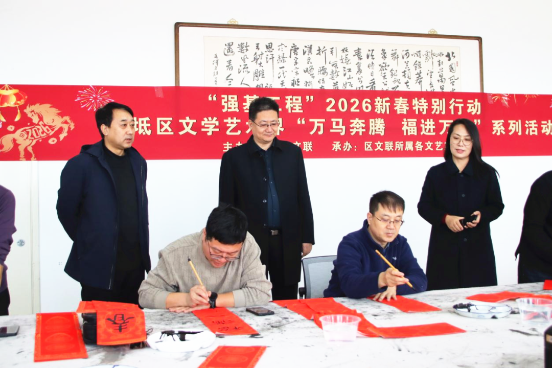 日前,由宝坻区文联主办、区文联所属各文艺家协会协办的“强基工程”2026新春特别行动——宝坻区文学艺术界“万马奔腾 福进万家”系列活动走进宝坻区融媒体中心,为新闻工作者送上新春祝福。