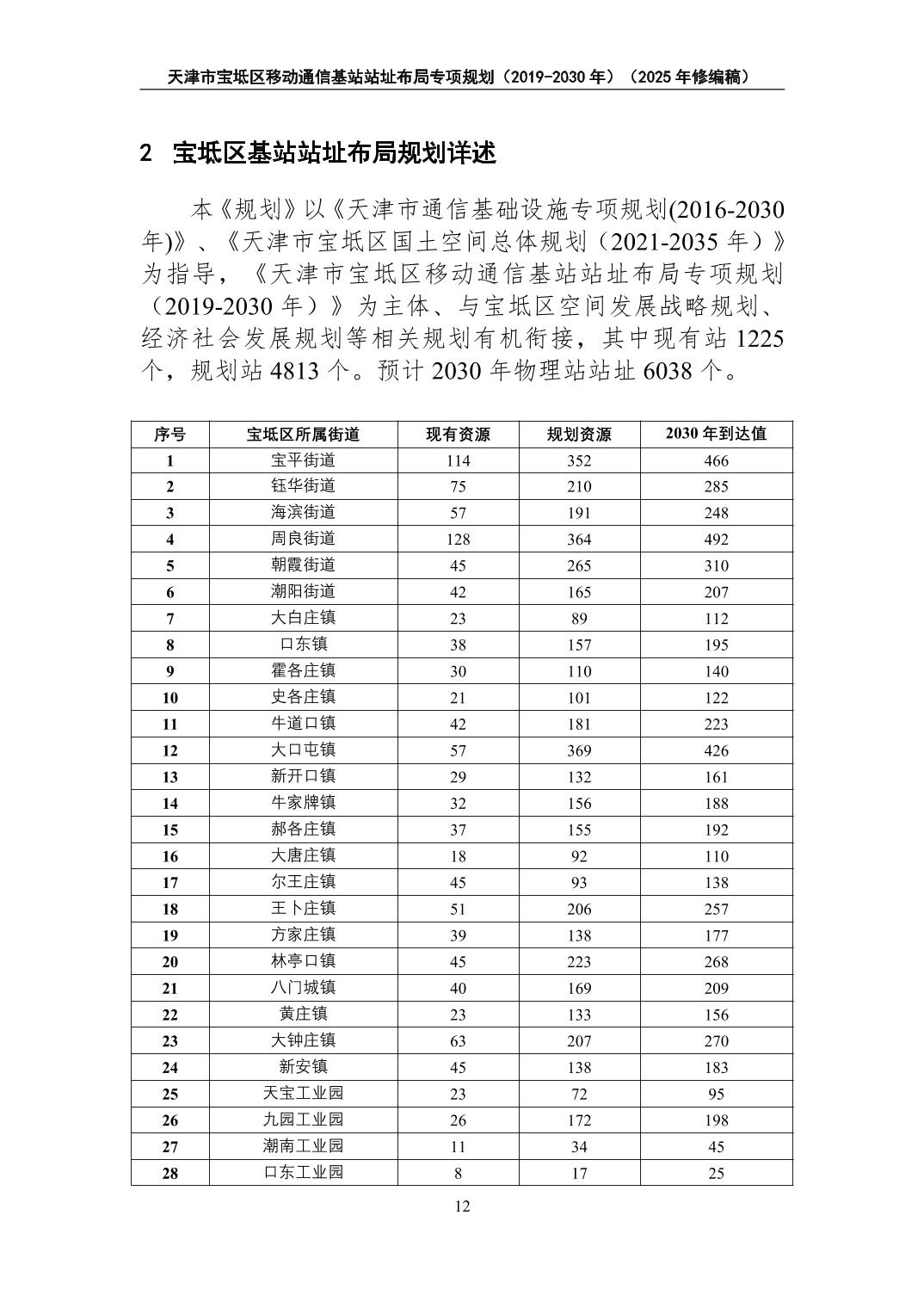 《天津市宝坻区移动通信基站站址布局专项规划(2019-2030年)(2025年修编稿)》已经区政府第86次常务会议审议通过,现印发给你们,请遵照执行。