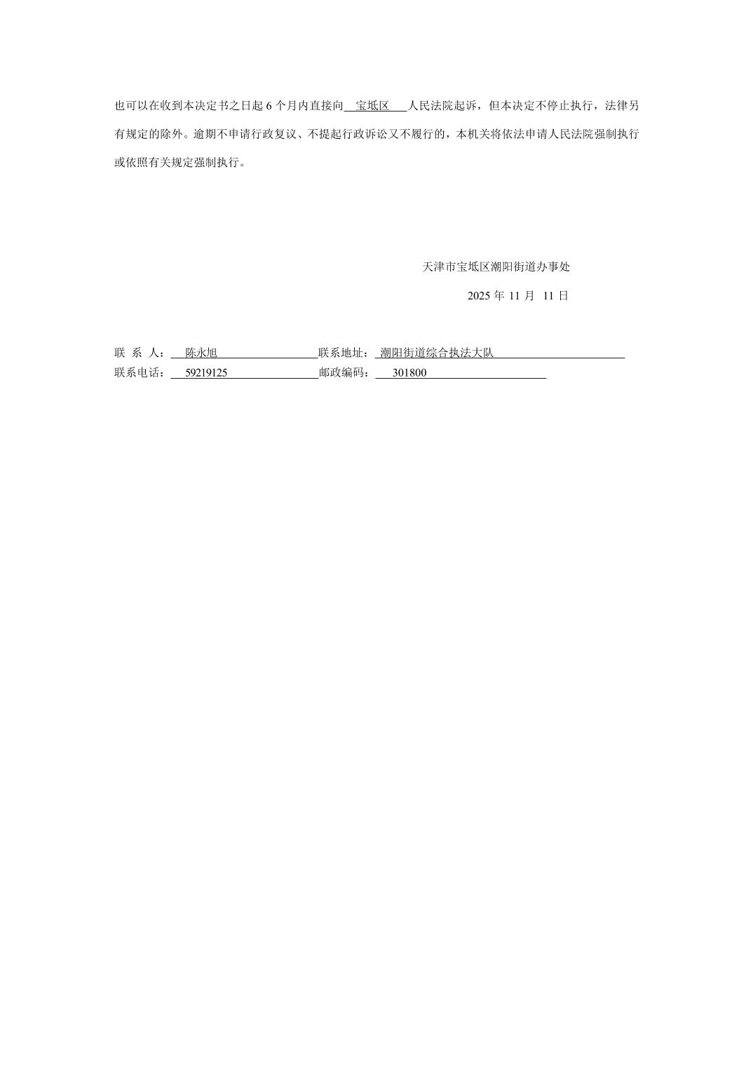 潮阳街道行政处罚决定书公示(2025年第012号)