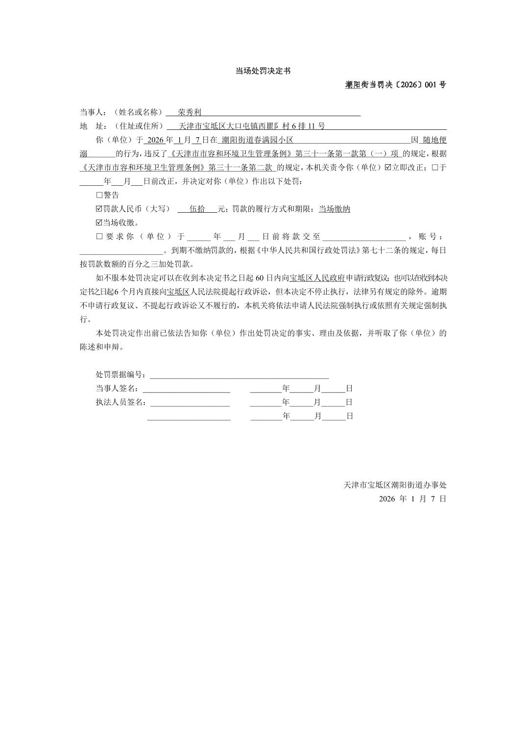 潮阳街道行政处罚决定书公示(2026年第001号)