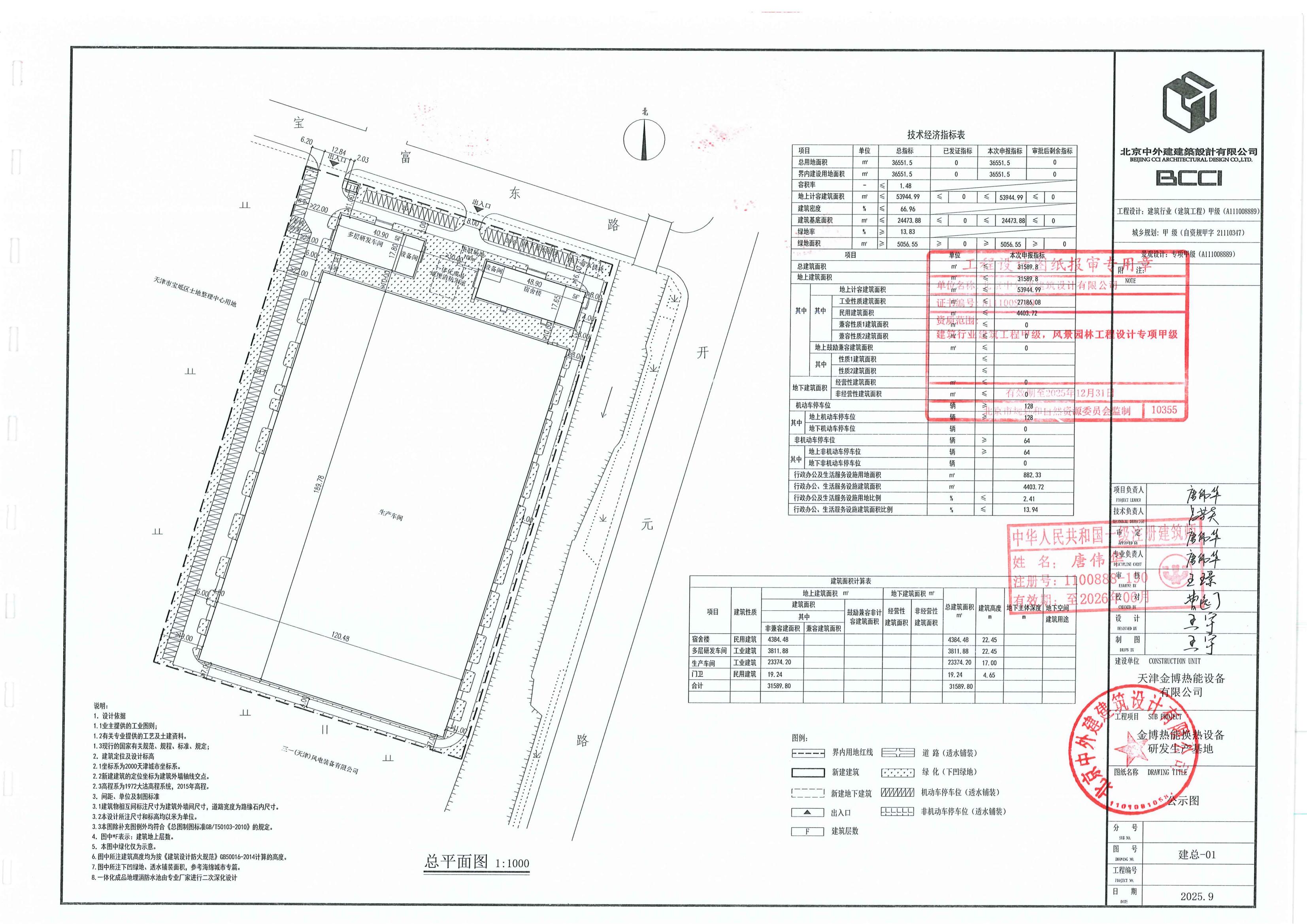 天津市规划和自然资源局宝坻分局于2025年10月10日核发了天津金博热能设备有限公司多层研发车间、宿舍楼、生产车间、门卫项目建设工程规划许可证。依据《中华人民共和国城乡规划法》及住房和城乡建设部《关于城乡规划公开公示的规定》的有关要求,现将该项目总平面图公布,公布期限为信息发布之日起至建设项目规划验收合格为止。