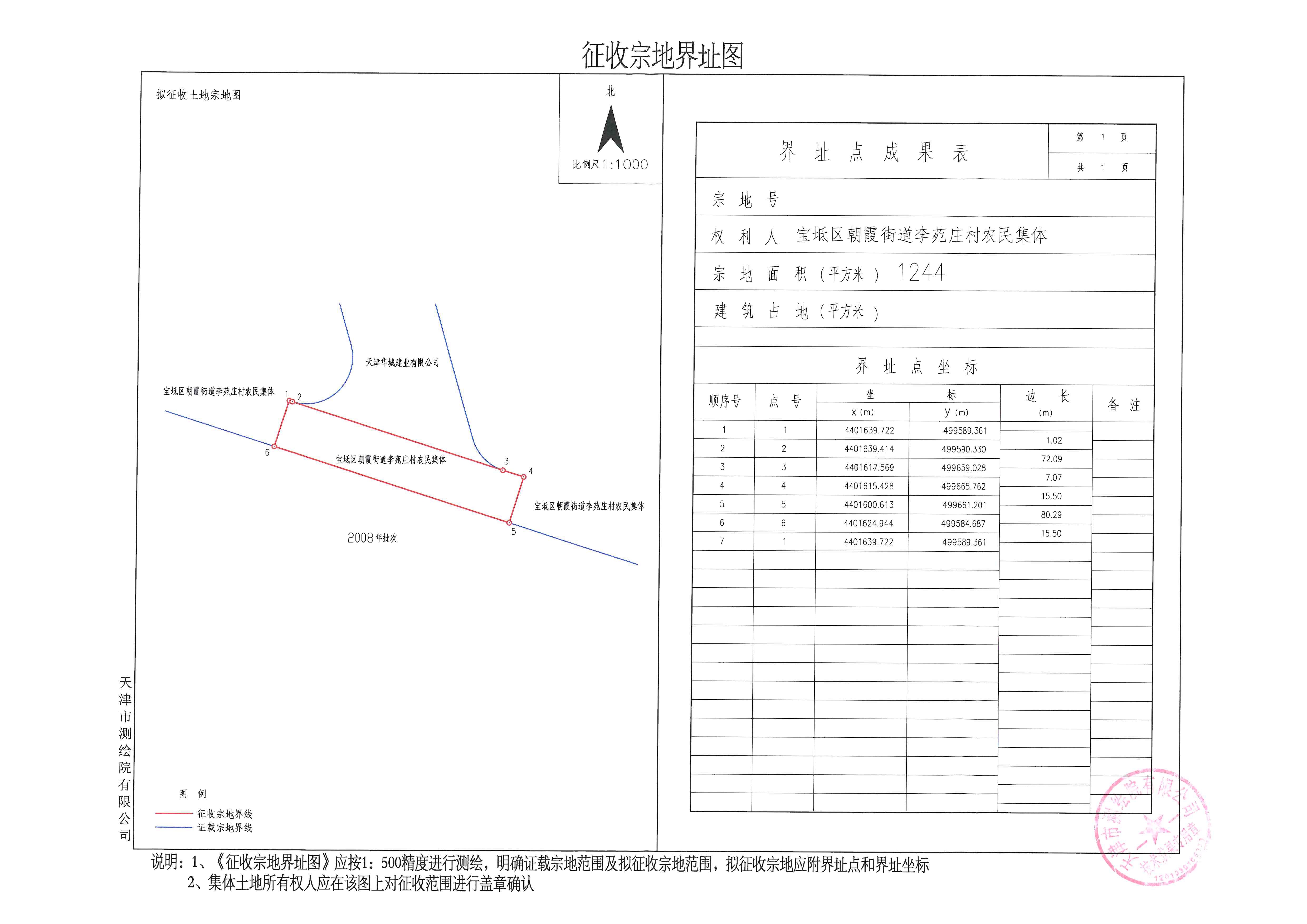 根据《中华人民共和国土地管理法》《中华人民共和国土地管理法实施条例》《天津市土地管理条例》等法律法规规定,为了公共利益需要,拟征收朝霞街道李苑庄村集体土地0.1244公顷(合1.866亩)。现就征收土地补偿安置方案主要内容公告如下: